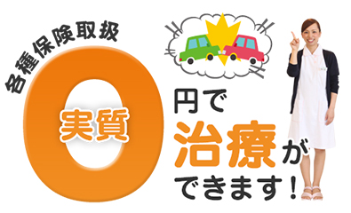 交通事故の治療を受ける時、その治療費はほとんどの場合、自賠責保険を使う事で窓口での支払いは0円となります。治療費と共に、休業損害、慰謝料、通院交通費なども自賠責保険から支払いを受けることができますので、安心して治療に専念して下さい。